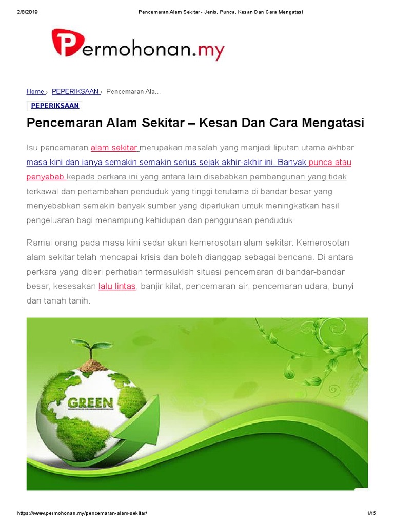 Pencemaran Alam Sekitar Jenis Punca Kesan Dan Cara Mengatasi Pdf